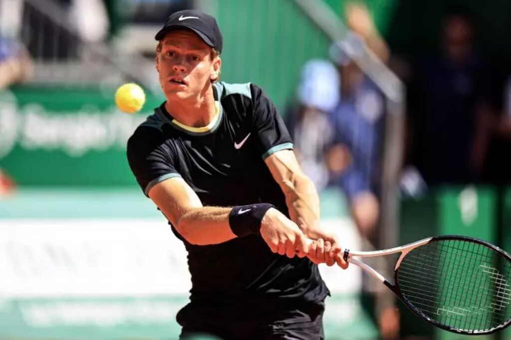 | L'Italien Jannik Sinner durant son quart de finale victorieux face au Danois Holger Rune, au Masters de Monte-Carlo, le 12 février. |