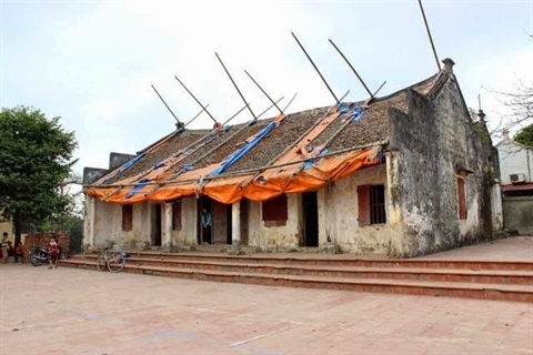 | La maison commune de Cô Chê, du district de Phú Xuyên (Hanoï), construite il y a 300 ans, est dans un état déplorable. |