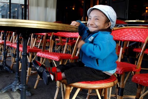 | Khagendra Thapa Magar, considéré comme l'homme le plus petit du monde, à Paris en octobre 2011. |