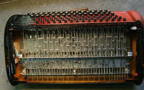 | Vue des ressorts de touches d'un accordéon en cours de finition, le 14 septembre 2005 à Tulle. |