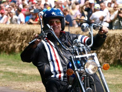 | En juillet 2009 à l'occasion du Festival automobile de Goodwood, en Angleterre, Peter Fonda était arrivé juché sur une réplique de la moto qu'il enfourchait 40 ans plus tôt dans "Easy Rider". |
