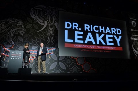 | Le paléontologue kényan et défenseur de l'environnement Richard Leakey distingué lors des Tribeca Disruptive Innovation Awards à New York. |