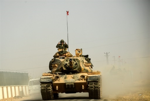 | Un char turc à Karkamis, dans le Sud-Est de la Turquie, le 25 août. |