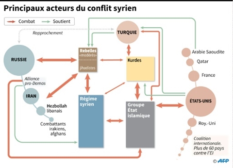 La réunion intervenait alors que le conflit est devenu encore plus complexe avec l'intervention militaire de la Turquie dans le Nord de la Syrie contre les jihadistes du groupe État islamique (EI), mais également contre les Kurdes. Ankara y a envoyé de nouveaux chars vendredi 26 août.