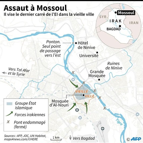Huit mois après le début de l'offensive pour reprendre Mossoul, deuxième ville d'Irak, les forces gouvernementales soutenues par la coalition internationale conduite par les États-Unis ont lancé dimanche 18 juin l'assaut final contre la Vieille ville pour chasser les jihadistes de leur dernier grand fief urbain en Irak.