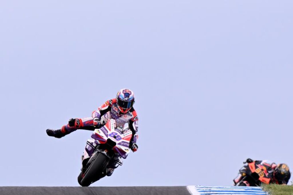 | Le pilote espagnol de l'équipe Ducati Pramac, Jorge Martin, lors du Grand Prix d'Australie de MotoGP à Phillip Island. |
