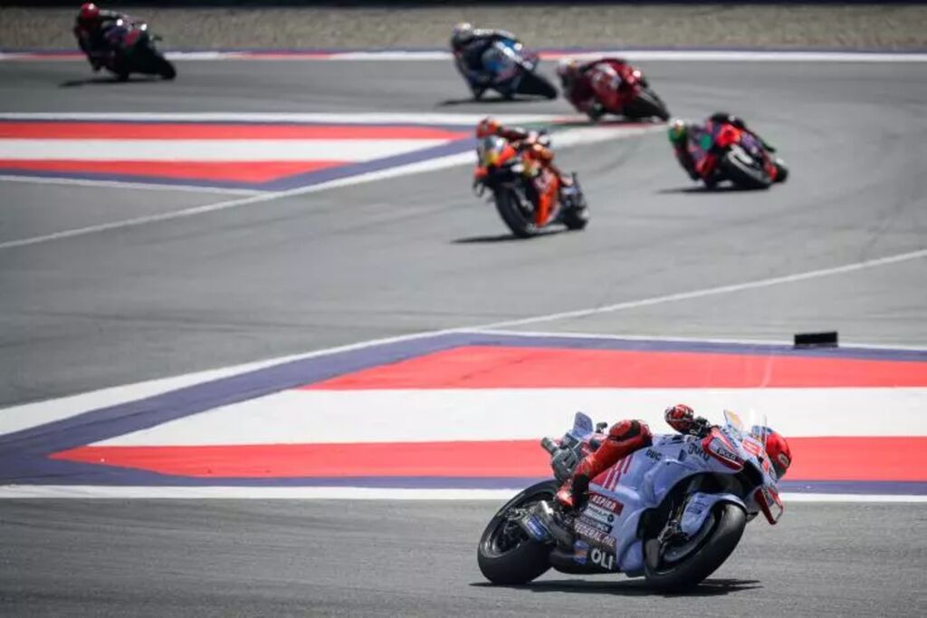 | Le pilote espagnol Marc Marquez (Ducati-Gresini, au premier plan) lors du Grand-Prix d'Autriche MotoGP sur le circuit de Spielberg le 18 août. |