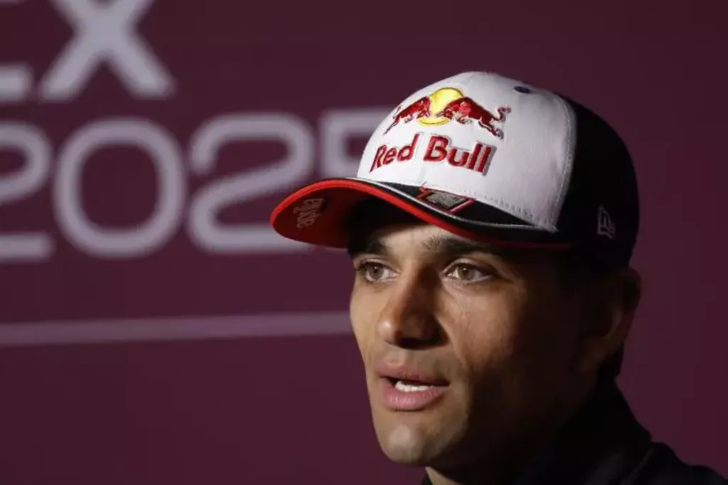 | L’Espagnol Jorge Martin, lors d'une conférence de presse avant le Grand Prix MotoGP du Qatar, sur le circuit international de Lusail, au nord de Doha, le 10 avril 2025. |