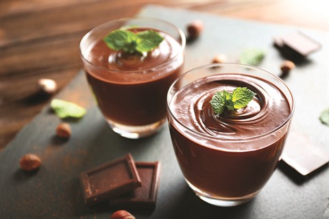 - "Éplucher" les carrés de chocolat (cela peut être plus facile avec un épluche-légumes) et saupoudrer la mousse avec les copeaux obtenus. Ajouter une praline, le tour est joué !