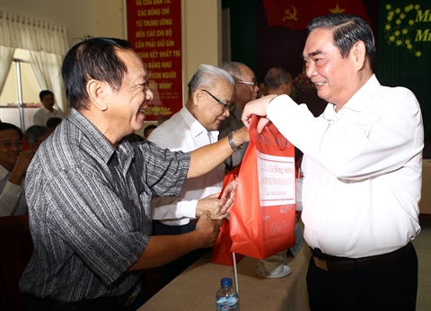 | Le permanent du secrétariat du Parti communiste du Vietnam Lê Hông Anh a offert des cadeaux à une centaine de cadres retraités et de héros des forces armées de la ville de Cân Tho (Sud), le 11 février |