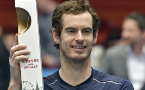 | Le Britannique Andy Murray avec le trophée du tournoi de Vienne, le 30 octobre |
