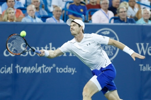 | L'Écossais Andy Murray face à l'Australien Bernard Tomic en quarts de finale du Masters 1000 de Cincinnati (Ohio), le 19 août. |