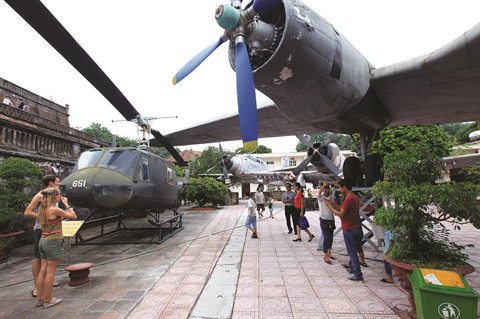 | Touristes au Musée de l’histoire militaire du Vietnam. |
