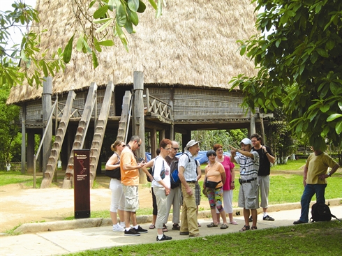 | Des touristes étrangers au Musée d’ethnographie du Vietnam, à Hanoi. |
