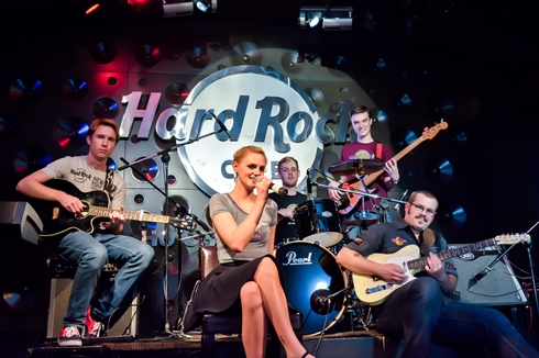 | Un groupe au Hard Rock Café à Hô Chi Minh-Ville. |