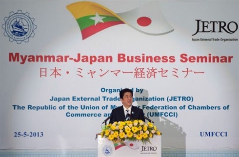 | Le Premier ministre japonais Shinzo Abe a promis le 25 mai "toute l'aide possible" de son pays au développement du Myanmar. |