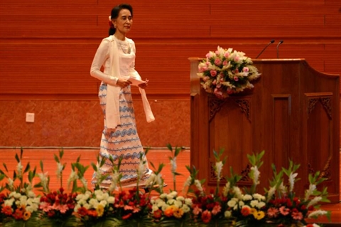 | Aung San Suu Kyi lors de la conférence de paix du Myanmar, le 31 août à Naypyidaw. Photo : AFP/VNA/CVN |