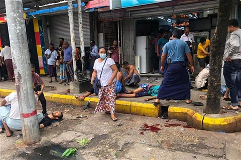 | Lieux de l'explosion d'une bombe à Yangon, le 31 mai. |