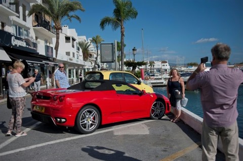 | Des amateurs prennent une Ferrari en photo, le 21 novembre 2015 près de Marbella. |