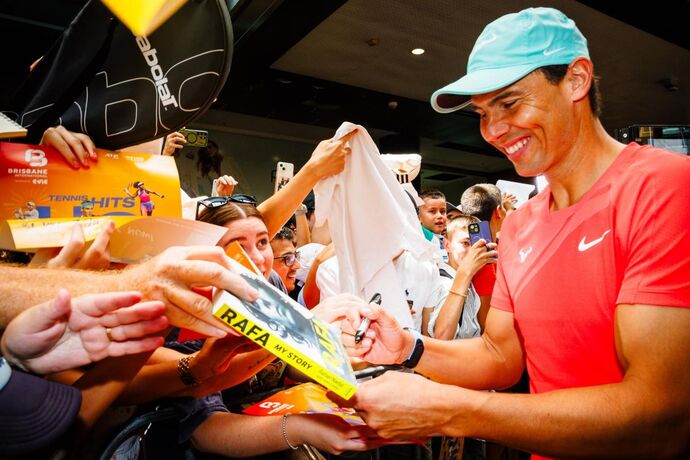 | L'Espagnol Rafael Nadal, le 29 décembre lors d'un événement promotionnel à Brisbane, en Australie. |