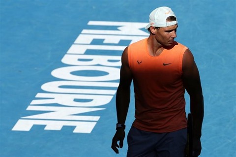 | L'Espagnol Rafael Nadal durant une session d'entraînement à Melbourne le 31 janvier. |