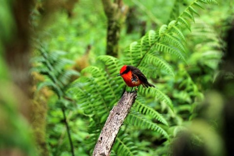 | Photo fournie par le Parc national des Galapagos montrant un moucherolle vermillon sur l'île de Santa Cruz dans l'archipel, le 18 décembre 2019. |