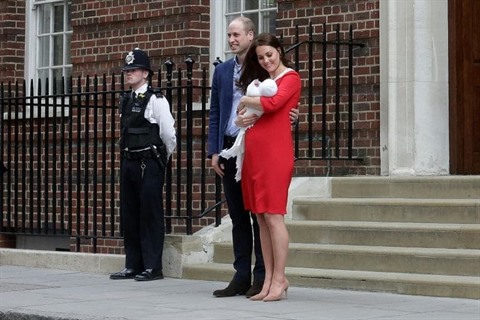 | Le prince William et sa femme Kate présentent leur troisième enfant à Londres le 23 avril. |