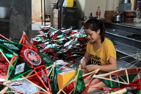 | Le village de Bao Dap, dans la province de Nam Dinh (Nord), fabrique près de 1,5 millions de lanternes étoilées par an |