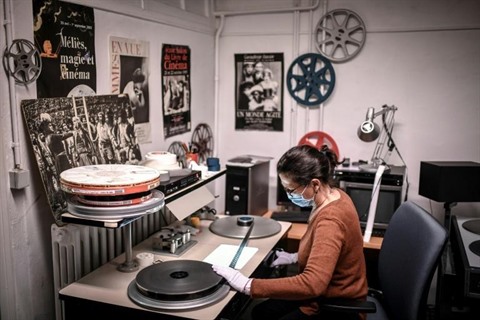 | La monteuse Laure Marchaut travaille sur le film Napoléon d'Abel Gance le 6 mai à Montigny-le-Bretonneux. |