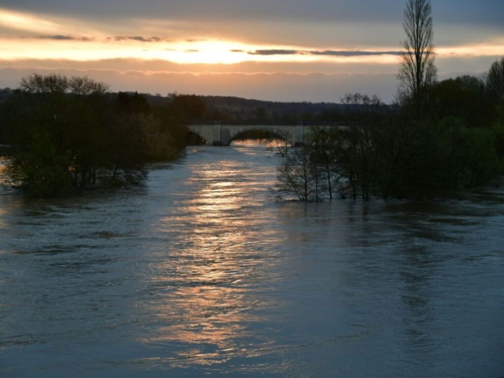 | La Creuse en crue à La Roche-Posay, le 31 mars 2024, après de fortes précipitations |