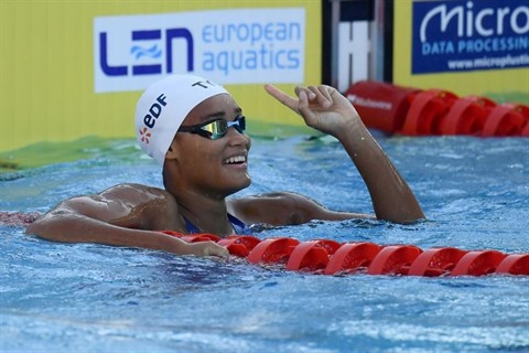 | Analia Pigrée sacrée sur le 50 m dos des Championnats d'Europe de natation de Rome, le 14 août. |