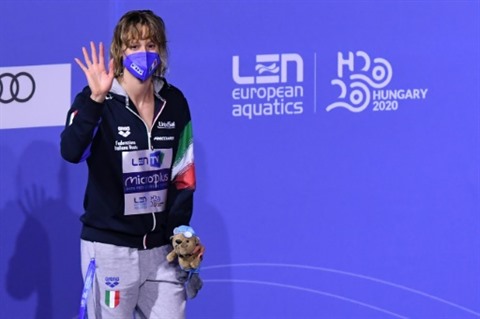 "Last Free 200" ("Dernier 200 libre"), a écrit en anglais la star italienne sur ses réseaux sociaux où elle a aussi diffusé en direct la cérémonie hommage durant laquelle elle a entraîné dans le bassin - tout habillé - le président du Comité olympique italien (Coni) Giovanni Malago.