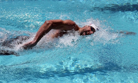 | L'Américain Michael Phelps sur 400 m nage libre, le 17 avril 2015, dans le centre aquatique Skyline de Mesa, en Arizona. |
