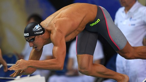 | Le nageur Jordan Pothain lors des Championnats de France en grand bassin, le 24 mai à Schiltigheim. |