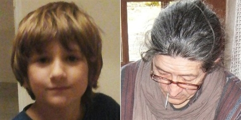 | Deux photographies délivrées par la gendarmerie nationale le 19 août 2016 montrent le portrait de Nathael (gauche) 9 ans, enlevé par son père (droite) le jour-même à Romenay, en Saône-et-Loire. |