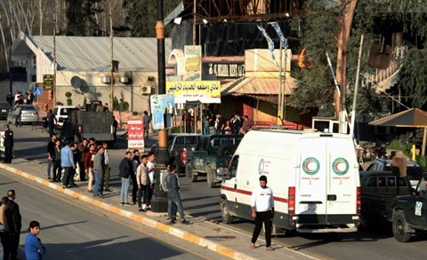 | Des ambulances transportant corps et blessés après le naufrage d'un bac sur le Tigre à Mossoul, le 21 mars en Irak. |