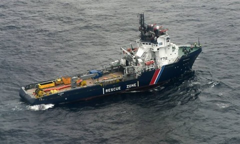 | Le navire VN Sapeur dans la zone de pollution, à 300 km à l'ouest de La Rochelle, le 18 mars. |