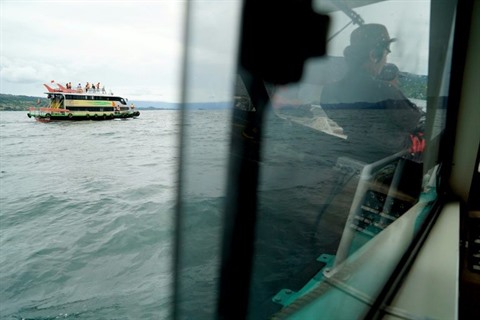 | Des équipes de secours recherchent des victimes du naufrage d'un bateau sur le lac Toba, le 19 juin en Indonésie |
