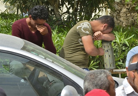 | Des hommes en pleurs attendent des nouvelles d'amis ou proches dans la ville de Sfax en Tunisie le 4 juin 2018. |