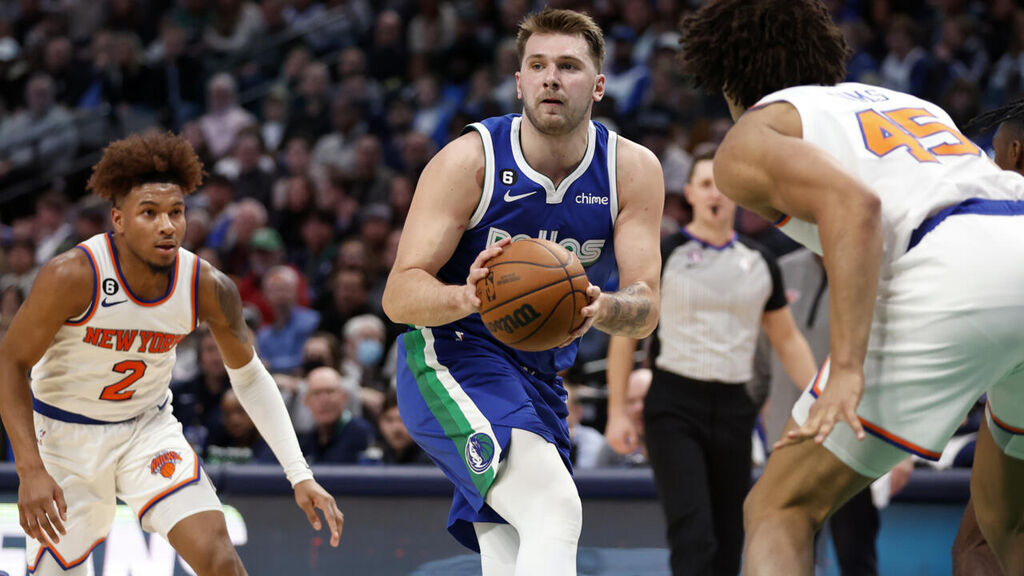| Le joueur slovène des Dallas Mavericks Luka Doncic lors du match contre les New York Knicks le 27 décembre à Dallas. |