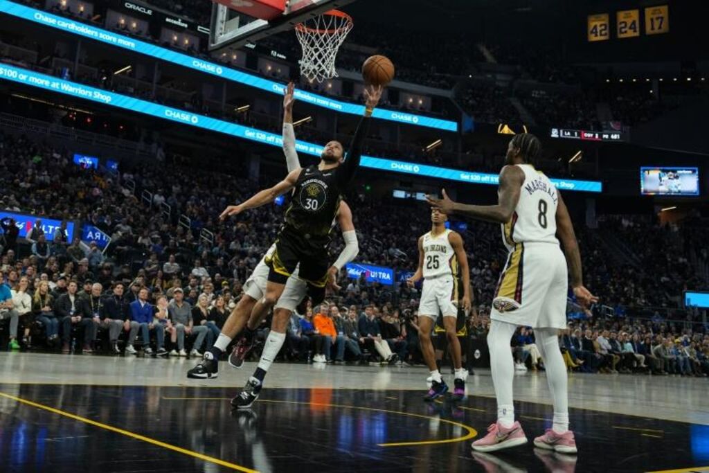 Les Warriors, qui repassent devant Minnesota (7e), étaient à la peine en première période, balbutiant leur basket, comme trop souvent cette saison, jusqu'à déplorer un retard de vingt unités avant la pause, face aux Pelicans (8e) de Brandon Ingram (26 pts).