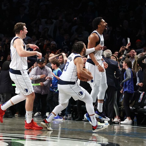 | Spencer Dinwiddie après avoir marqué le panier de la victoire de Dallas sur le parquet des Brooklyn Nets, le 16 mars en NBA. |