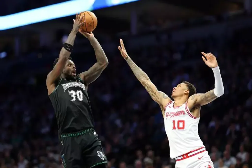 Pourtant privés d'Anthony Edwards, les Minnesota Timberwolves ont renversé un match fou, s'imposant 110-108 contre Houston après prolongation, alors qu'ils étaient menés 108-95, le plus grand retour en prolongation depuis le début des statistiques automatisées en NBA (1997-1998).