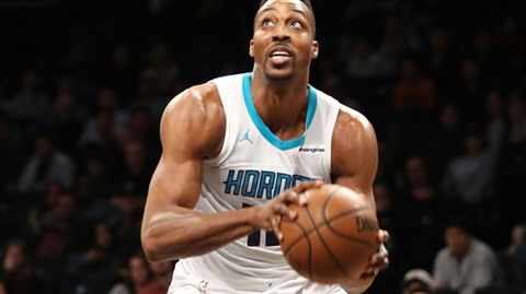 | Dwight Howard, joueur des Charlotte Hornets, le 21 mars 2018 lors du match face à Brooklyn. |