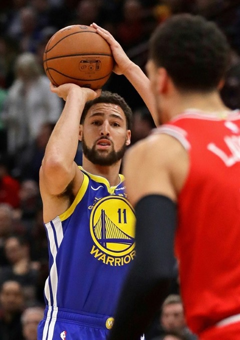 | Klay Thompson des Golden State Warriors face aux Bulls, à Chicago, le 29 octobre. |