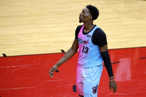| Bam Adebayo lors d'un match du Miami Heat sur le parquet des Houston en NBA le 11 février. |