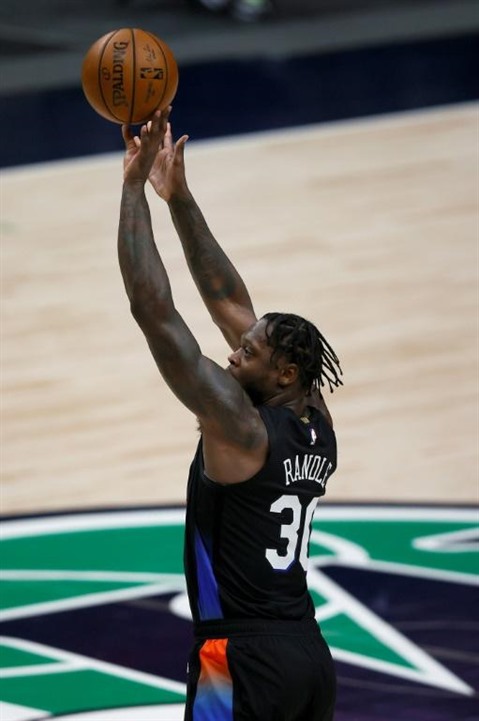 | Julius Randle lors d'un match des New York Knicks sur le parquet des Dallas Mavericks en NBA, le 16 avril. |
