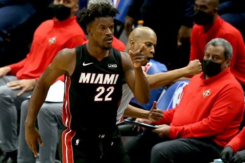 | Jimmy Butler, du Miami Heat, lors du match contre les Pelicans, à La Nouvelle-Orléans le 4 mars. |