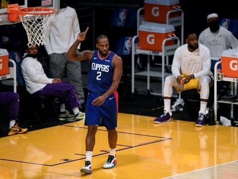 | Kawhi Leonard des LA Clippers lors du match remporté sur le parquet des Los Angeles Lakers le 22 décembre pour la reprise de la NBA. |