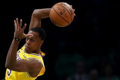 | Rajon Rondo des Los Angeles Lakers lors du match de NBA face aux Celtics, à Boston, le 7 février. |